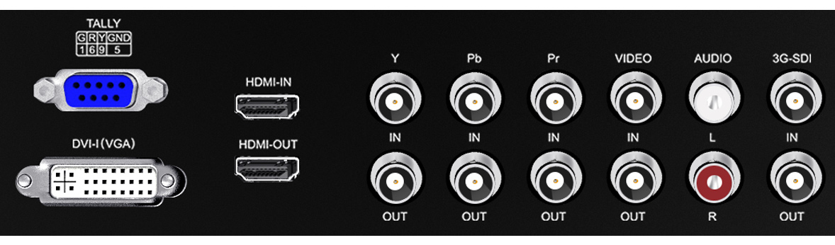 3G-SDI, HDMI, YPbPr, Video, Stereo Headphone, Internal Speaker