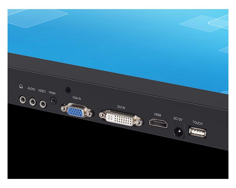 不僅配備了USB(觸摸配置)、DC12V電源、HDMI、VGA、YPbPr、VIDEO、AUDIO輸入接口,還配備了3.5mm立體聲耳機(jī)輸出和揚(yáng)聲器,接口豐富,適用性更強(qiáng)。