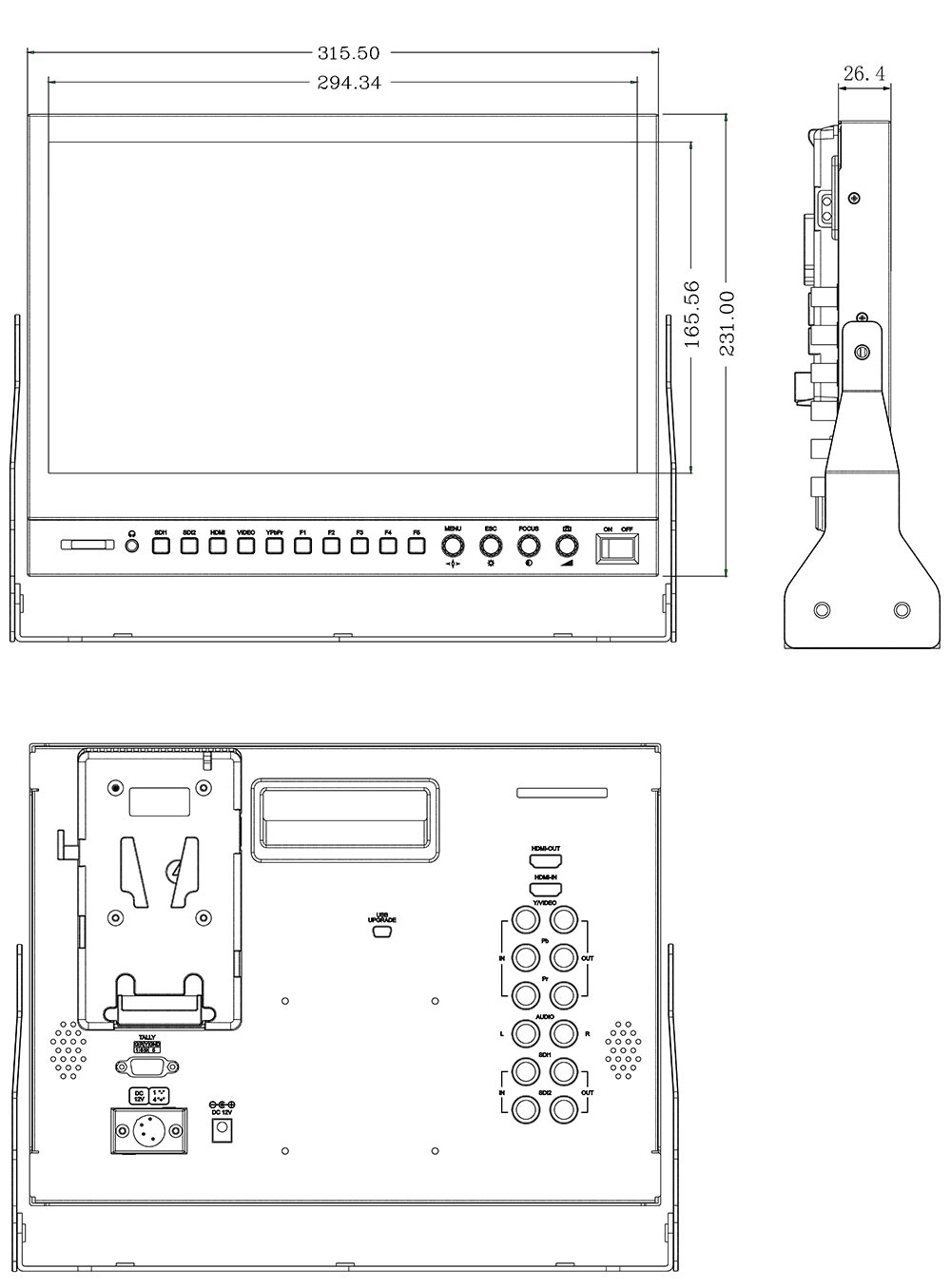 Unit Size  315.5L×231H×26.4D mm (Without Bracket)