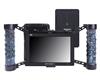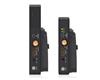 Both the transmitter and receiver are compact size designed, both the TX and RX feature 1⁄4”-20 holes for mounting to cameras and equipped with SONY F970 battery plates to be powered by standard F970 camera batteries. There are D28S / D54, LP-E6 and U60 (optional) a variety of battery plates to choose. The transmitter and receiver can also be powered via the 4-PIN LEMO DC in socket of 7-36V input.
