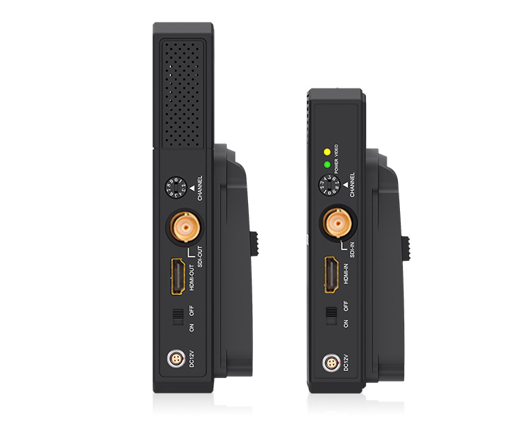 WHD150 is the broadcast industry wireless system, includes a transmitter and receiver, with WHDI (OFDM) technology, supports uncompressed 3G/ HD/ SD-SDI and HDMI wirelessly transmitted in 150 meters scale (max 200m), and with less than 1ms latency. The system is pure hardware connection, plug and play build-up, which is widely used in on-site shooting and director monitoring.