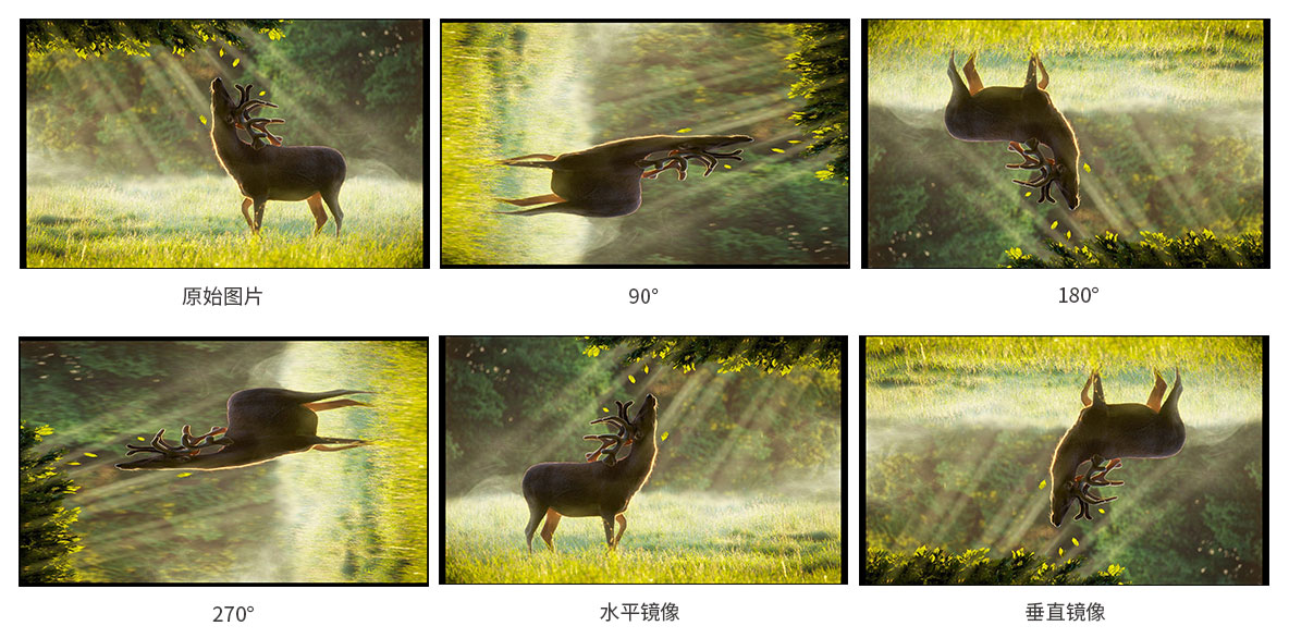 畫面旋轉是可以將圖像實現90°、180°、270°、水平鏡像、垂直鏡像模式翻轉。