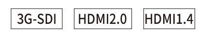 3G-SDI、 HDMI2.0、 HDMI1.4、 RS485、 GPI、 DP (DisplayPort)、 USB