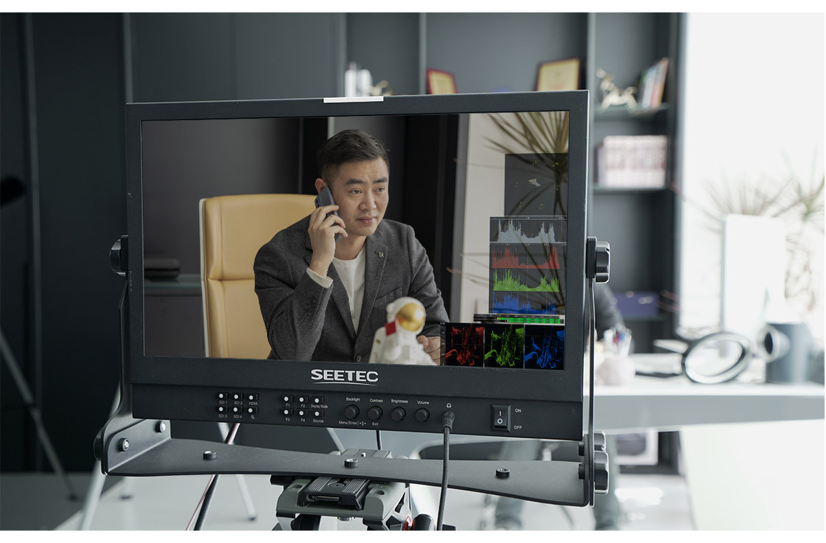 監(jiān)視器提供一系列的專業(yè)輔助監(jiān)看工具,如波形圖、3D-LUT、峰值對焦、直方圖、矢量圖、音頻柱、時間碼、變形模式等,所有功能均可通過菜單輕松選擇操作,也可以設(shè)置快捷鍵或通過GPI控制,有效提高現(xiàn)場拍攝和后期制作的效率。