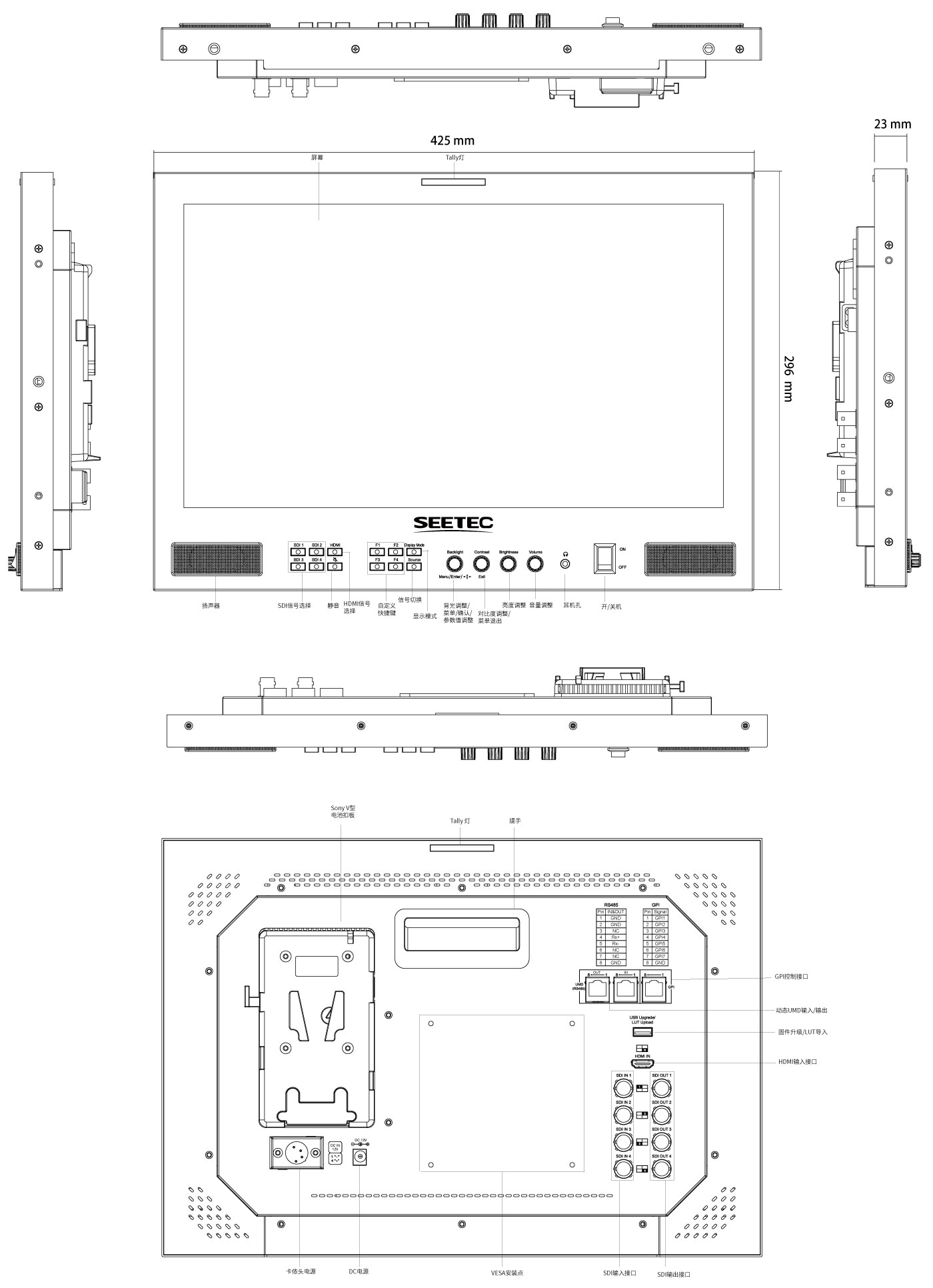 * 全波形顯示、波形圖、矢量圖、RGB直方圖、亮度直方圖、輔助對焦、斑馬紋、中心標記等功能,能幫助準確對焦和曝光,適用于前期拍攝、后期制作以及顏色校準