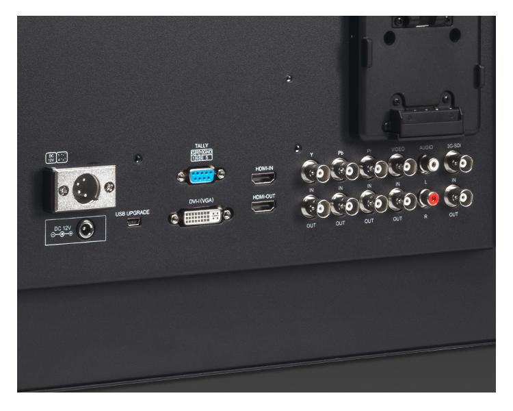 監視器配備了3G-SDI、HDMI、YPbPr、Video、AudioL/R、DVI接口,多種輸入方式滿足您各種專業顯示方案的需求。